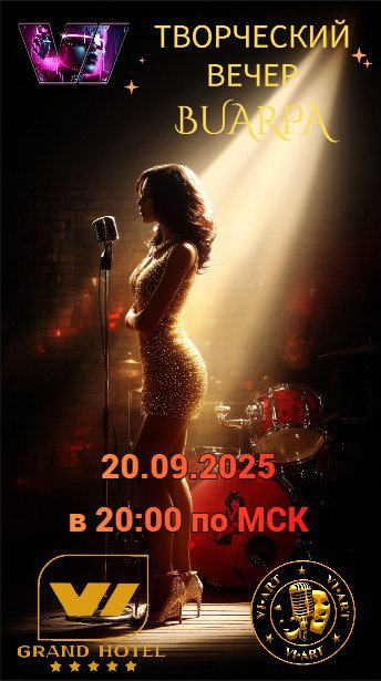 В программе: песни в исполнении Buarpa, живой стол заказов, лучшие вокалисты VI WORLD, уютная и дружеская атмосфера.